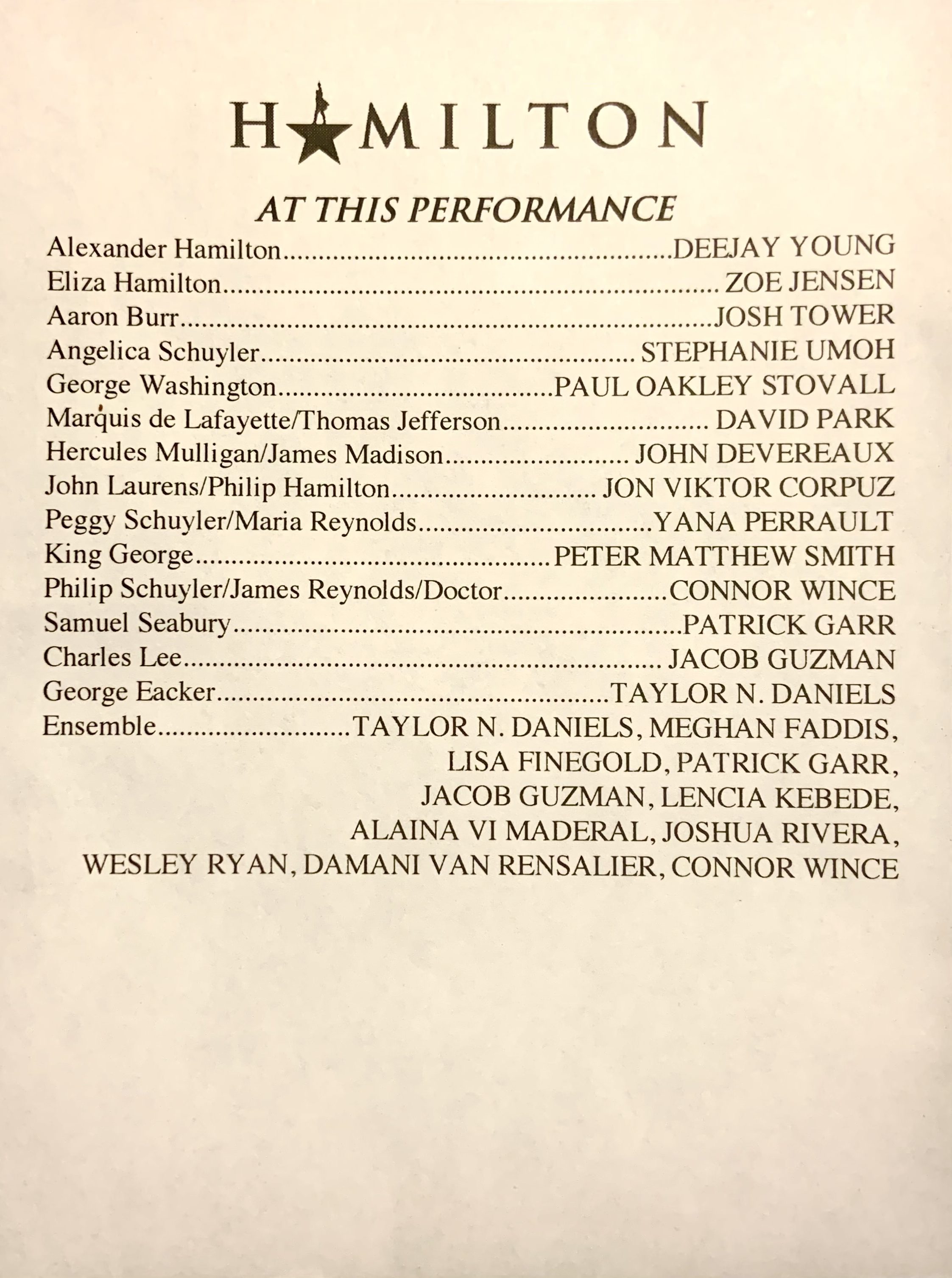 These cast members graced the stage with their amazing stage presence and made my experience feel truly historic.